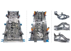 當沖壓加工紫銅、鋁等低熔點(diǎn)軟性薄材時(shí),沖壓會(huì )使高速分離又迅速疊合在一起的沖孔廢料,在沖裁面發(fā)生相互融結現象,沖孔廢料不再是呈現一片片能分離的狀態(tài),而是融結成一根條狀物的狀態(tài)向下排出。當刃口設計成有透空階梯孔時(shí),脫離有效刃口壁約束的條狀物廢料,在擴大的階梯孔內就有了彎曲的空間,彎曲是因刃口壁四周的磨擦系數不同誘發(fā)的,而磨擦系數不同則是由沖頭、凹模裝配間隙不均勻、凹模刃口壁四周加工的光潔度不一致等問(wèn)題造成的,當條狀廢料的彎曲頭部接觸到擴大的階梯孔一壁后,單側摩擦阻力就會(huì )使條狀廢料產(chǎn)生橫向扭曲變形,進(jìn)一步導致條狀廢料在階梯孔內的鐓粗變形,直至填滿(mǎn)整個(gè)落料孔。